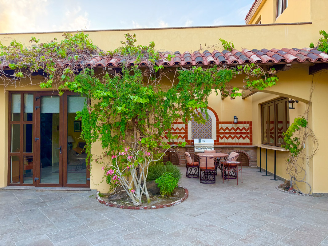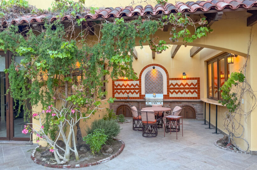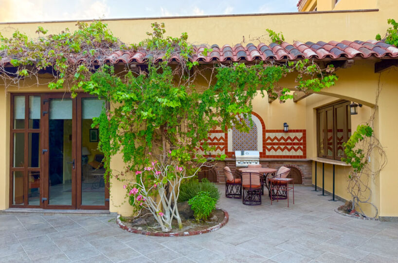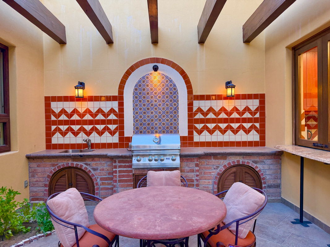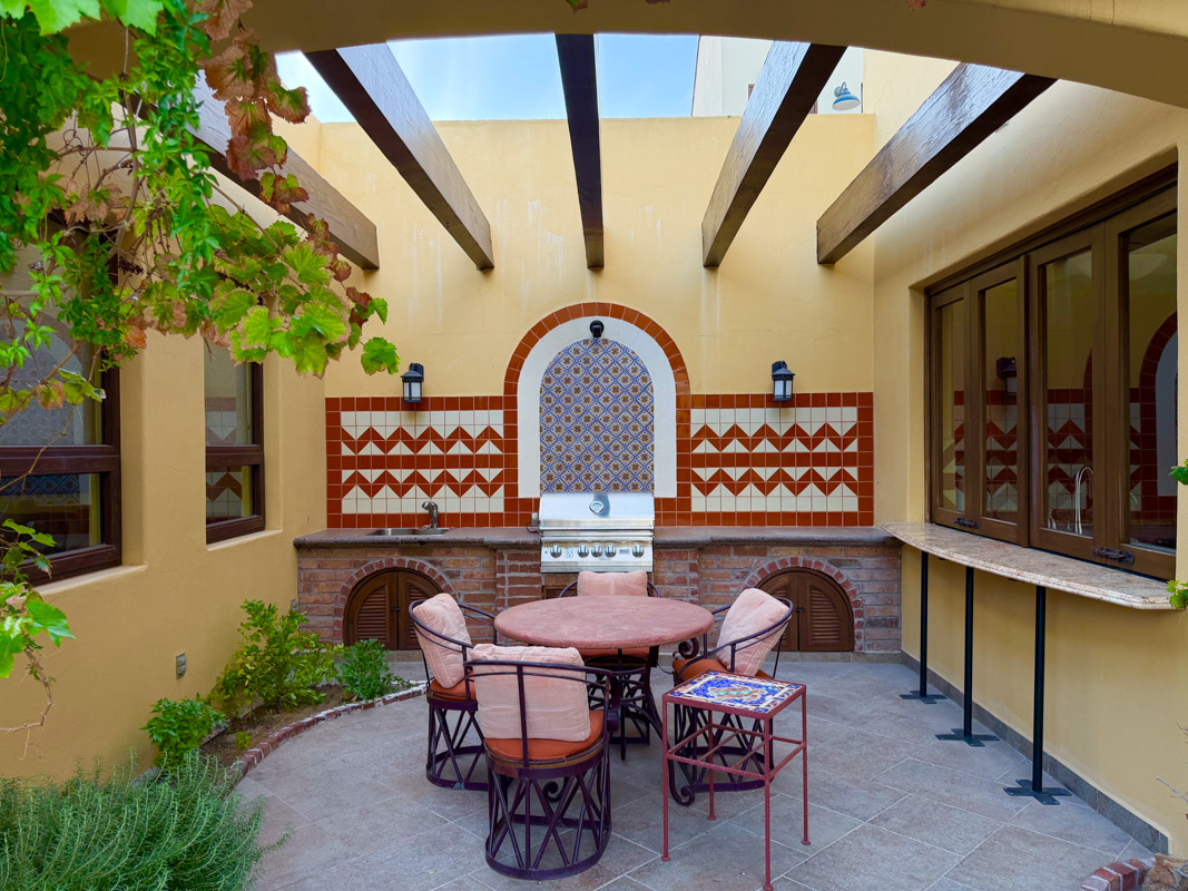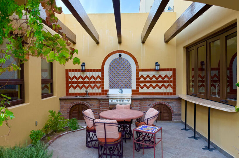 - Private courtyard with figs, pomegranates, citrus, grape vines, herb garden, and Talavera‑tiled outdoor kitchen
