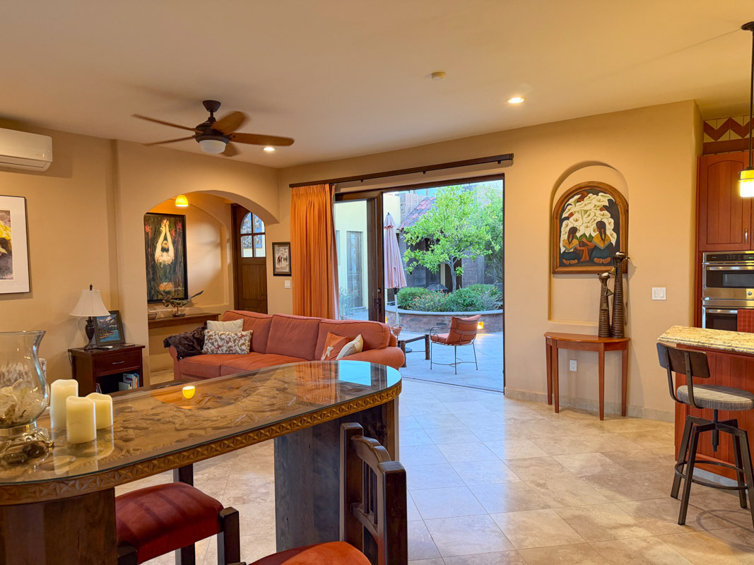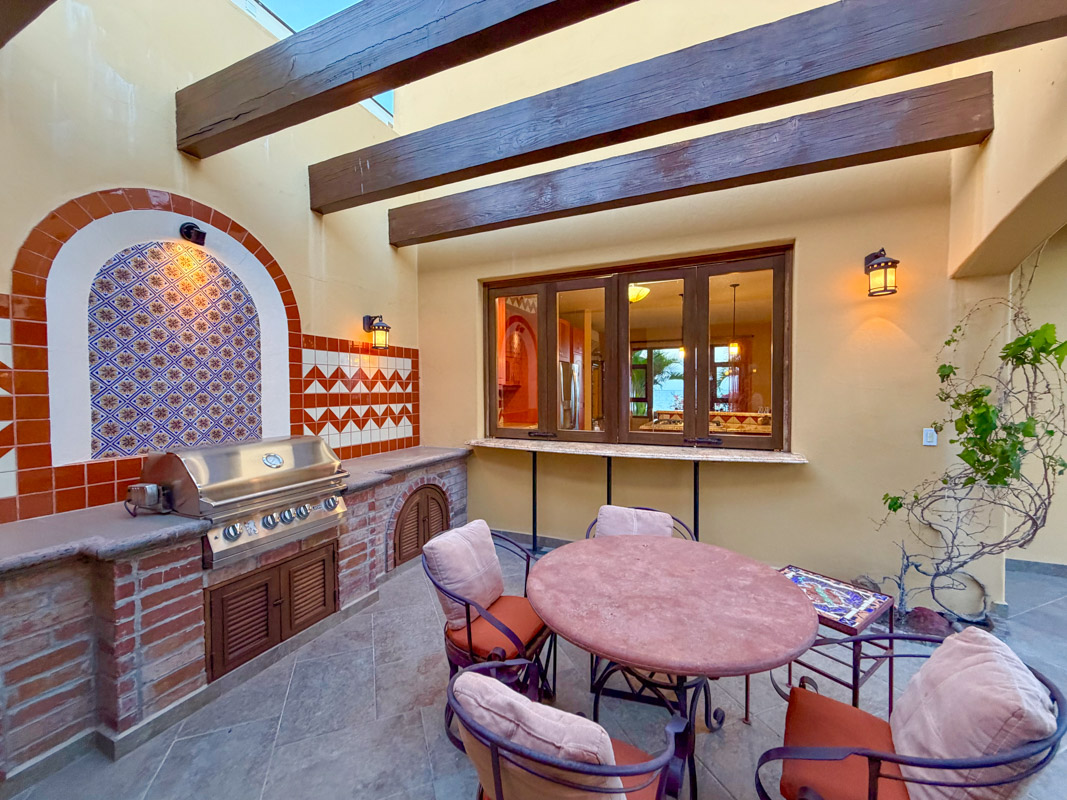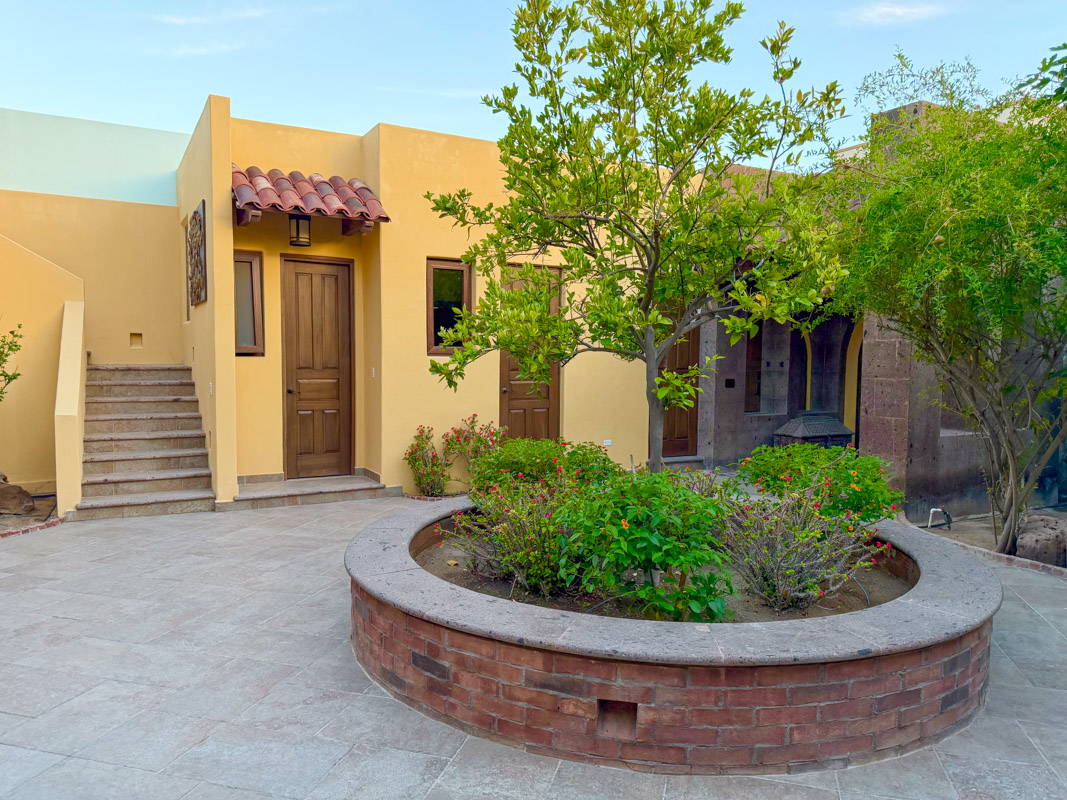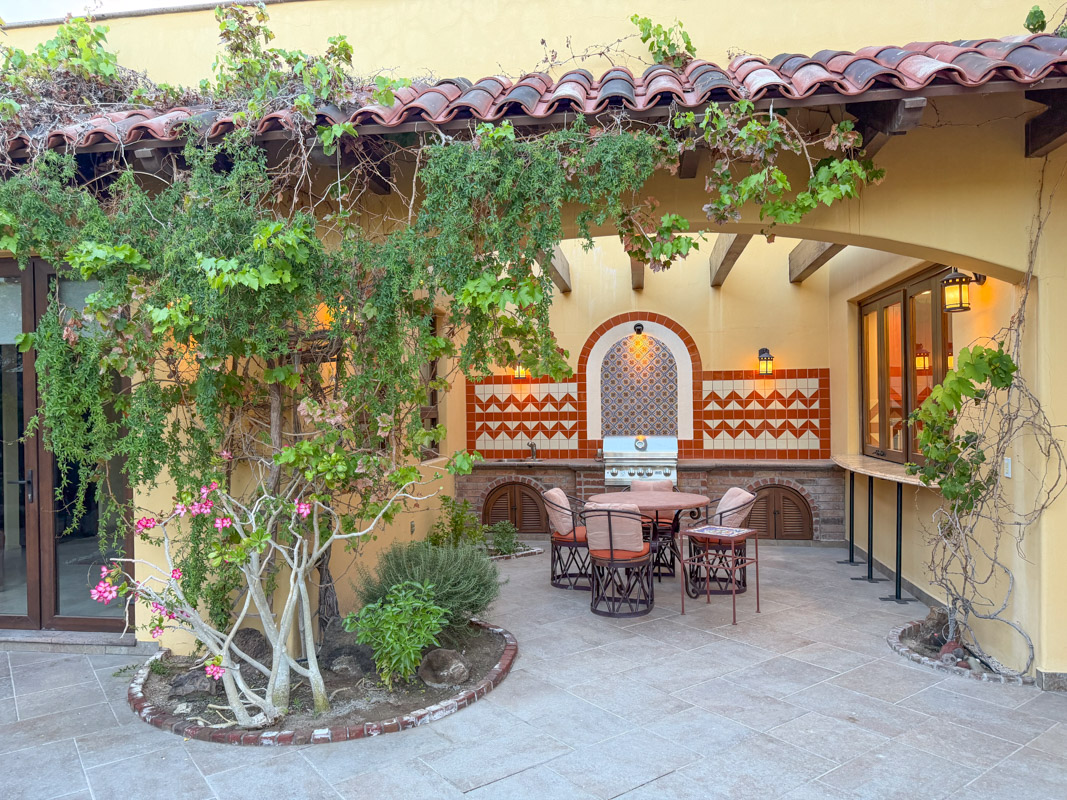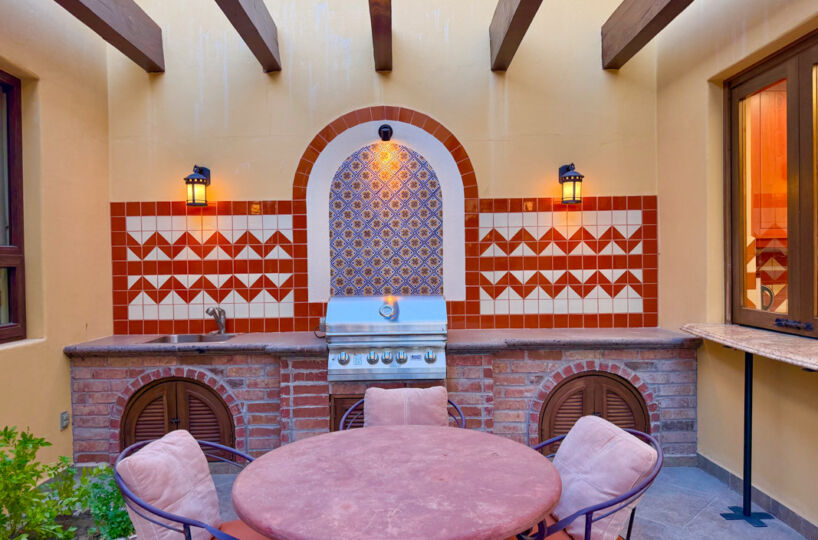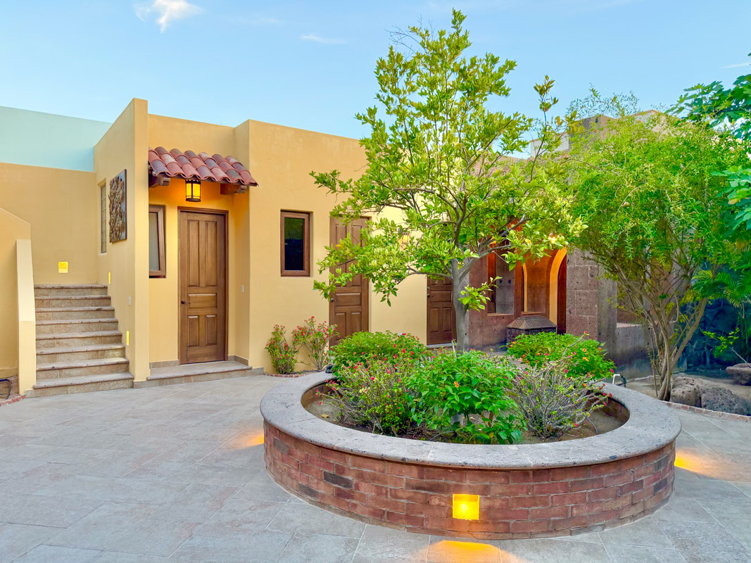 - Private courtyard with figs, pomegranates, citrus, grape vines, herb garden, and Talavera‑tiled outdoor kitchen