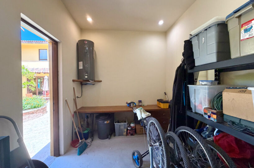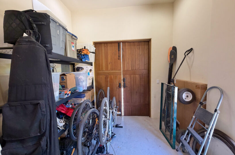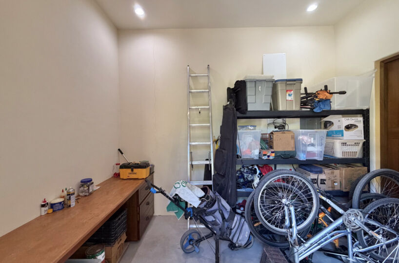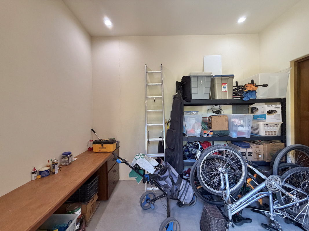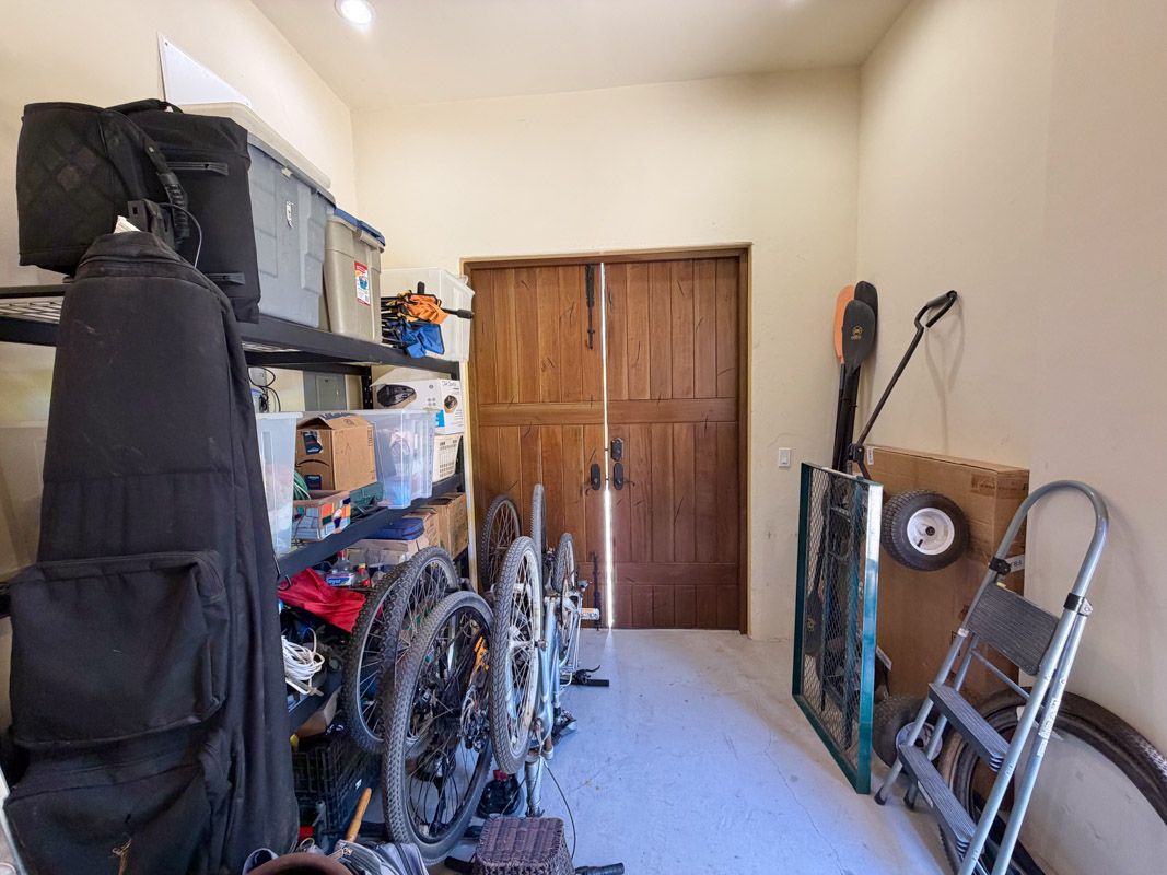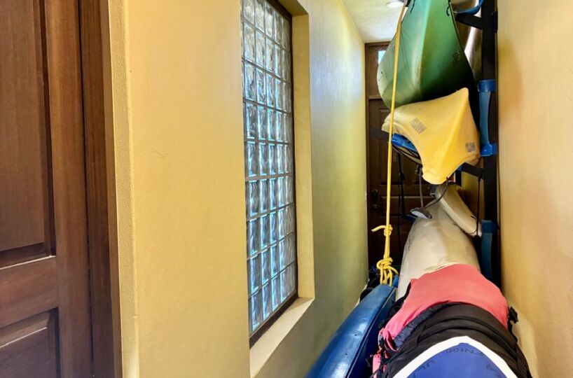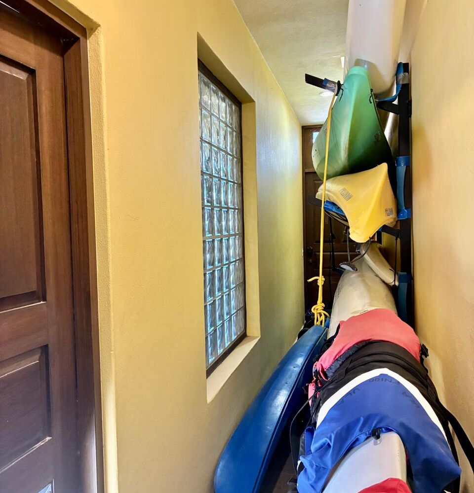 - Golf cart garage, storage bodega with custom kayak racks, and water cistern