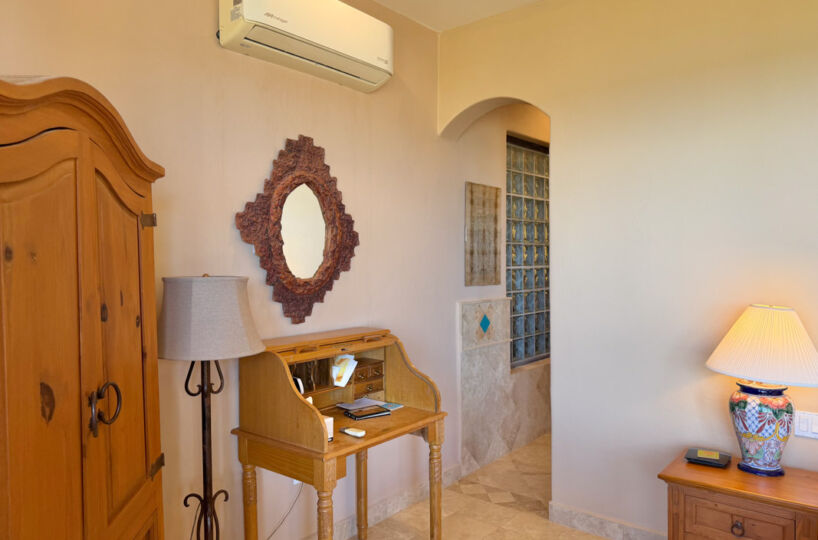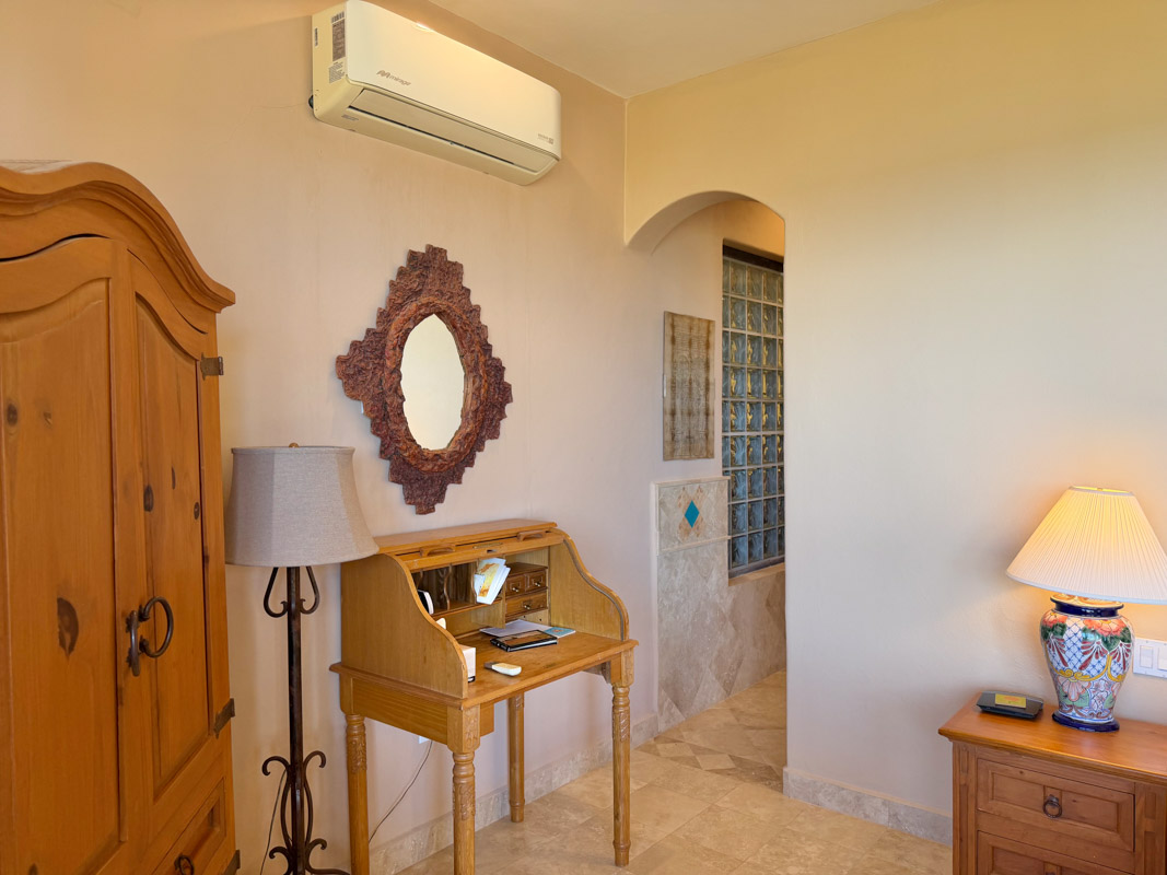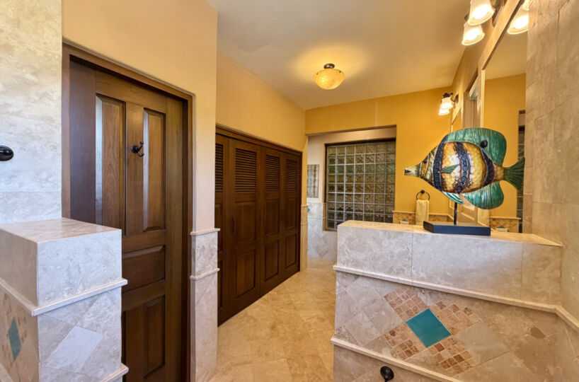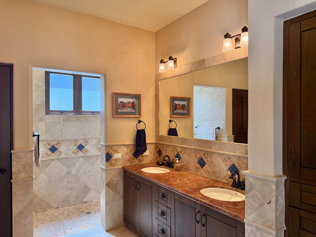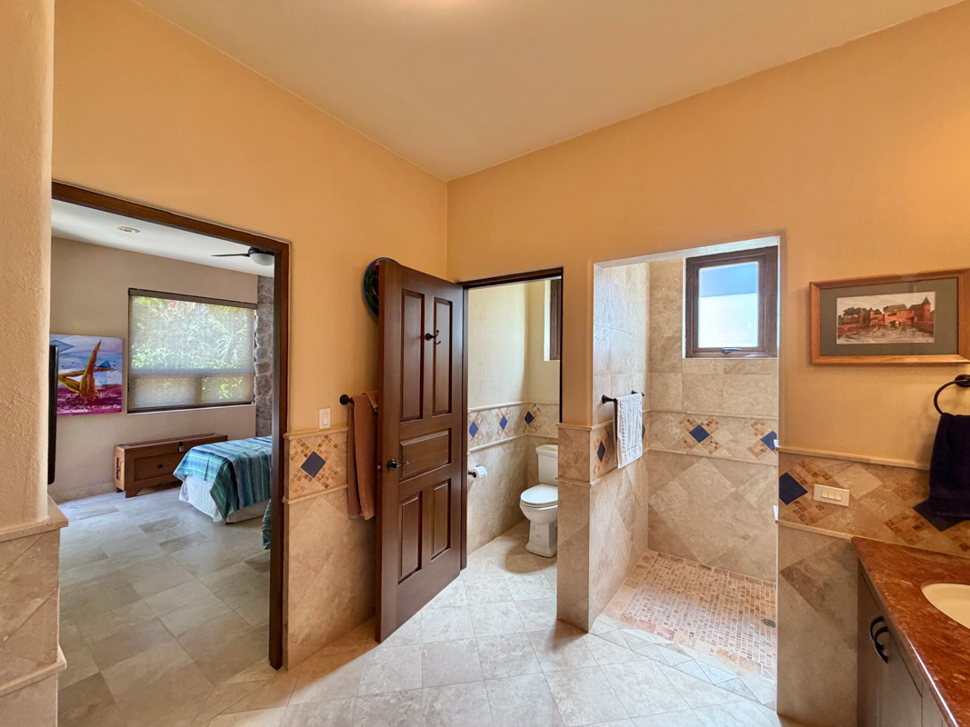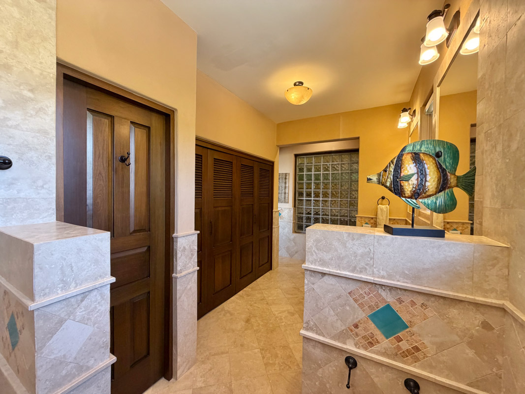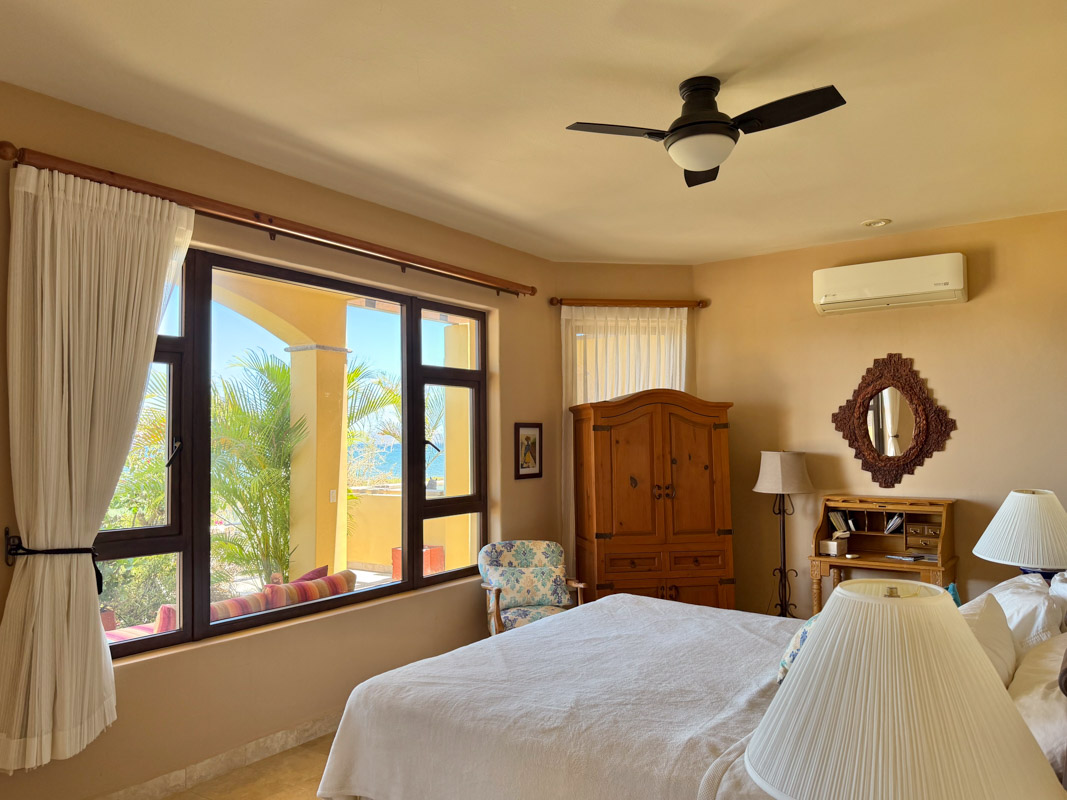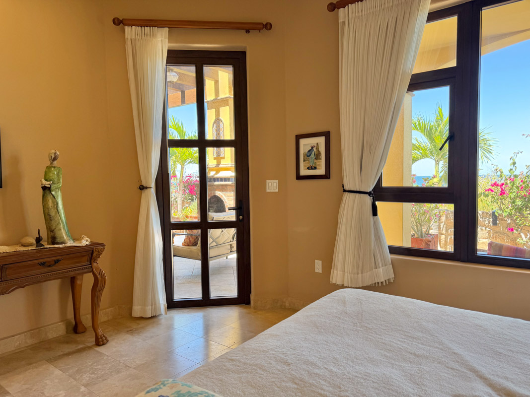 - Ground‑floor primary ensuite with ocean views; second primary ensuite and art studio on the upper level reached via cantera staircase