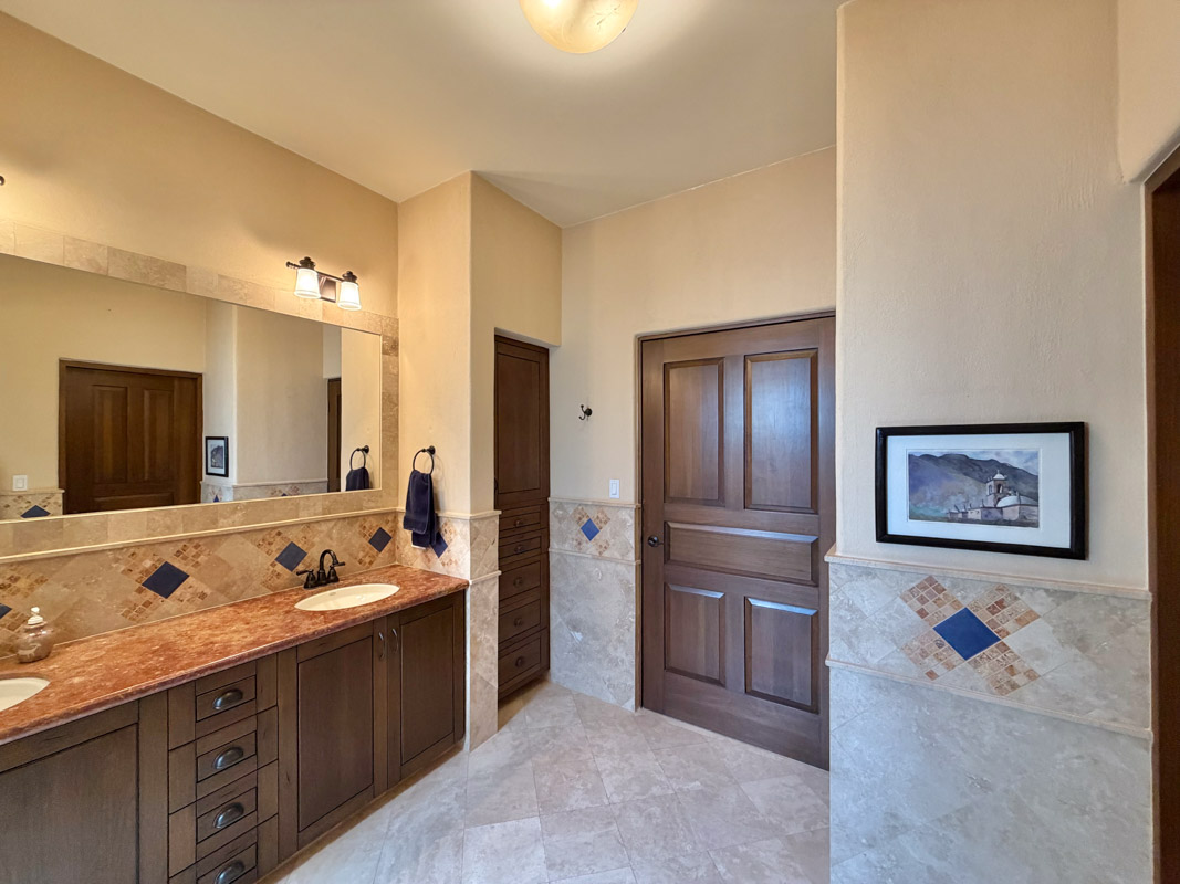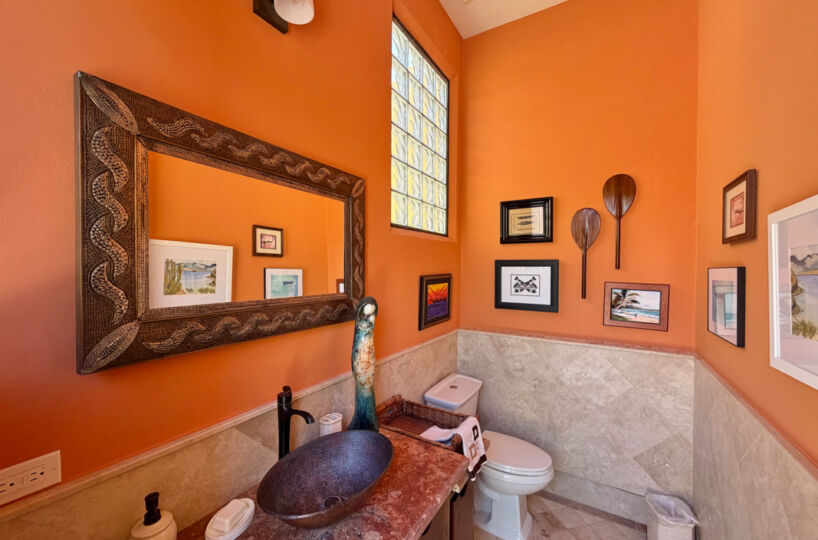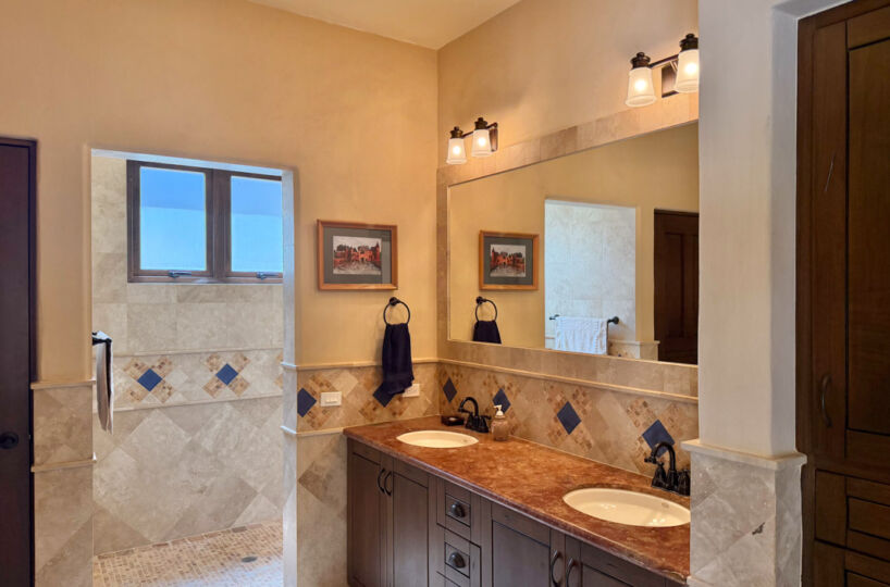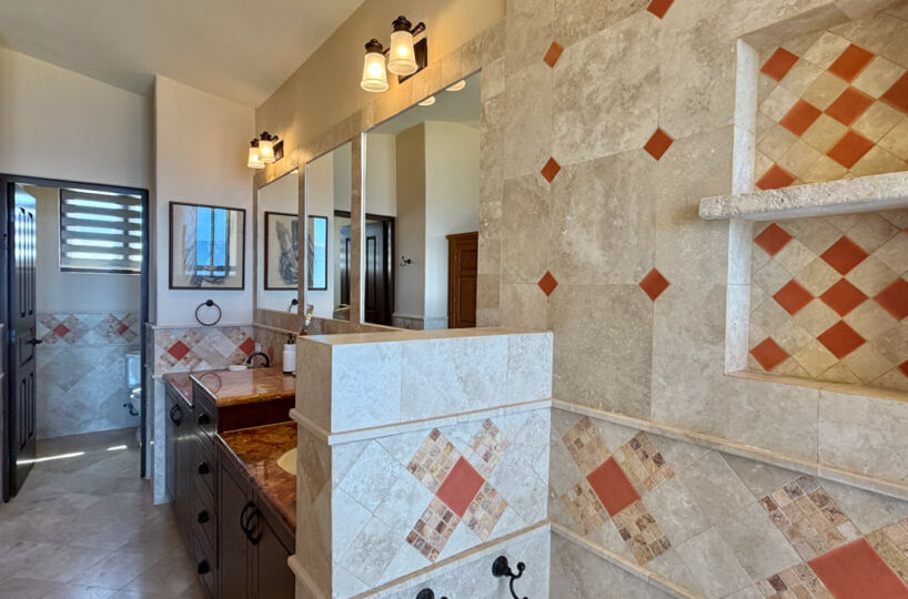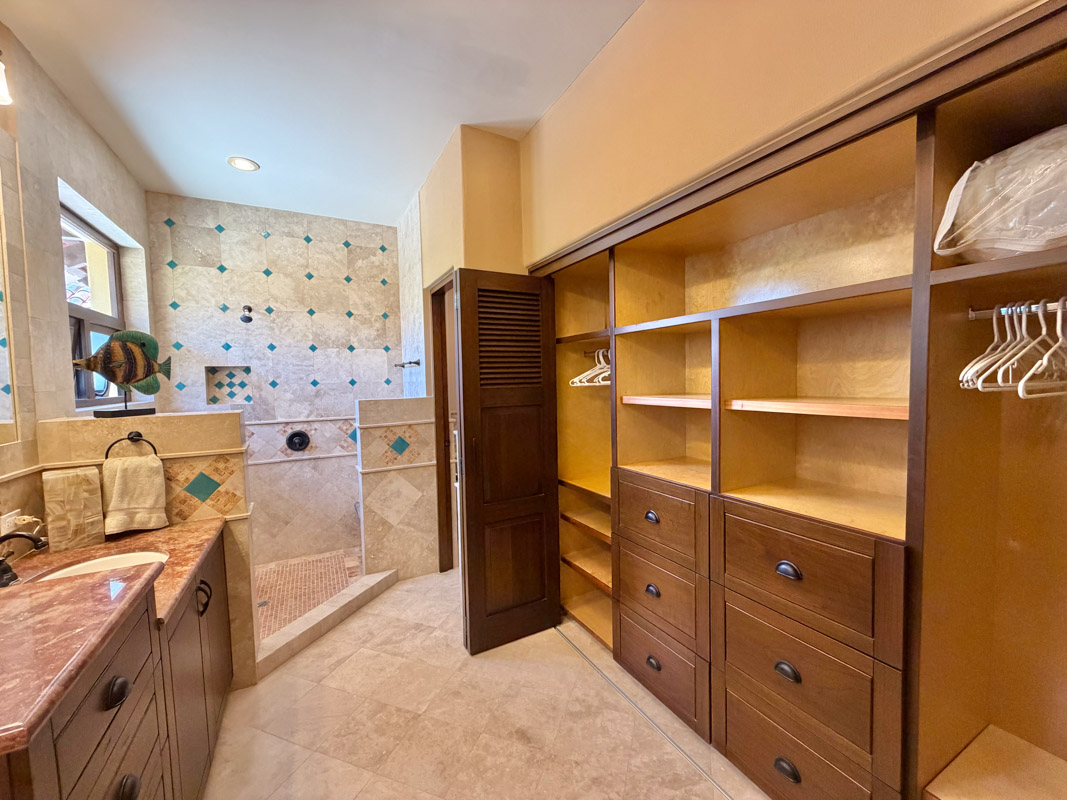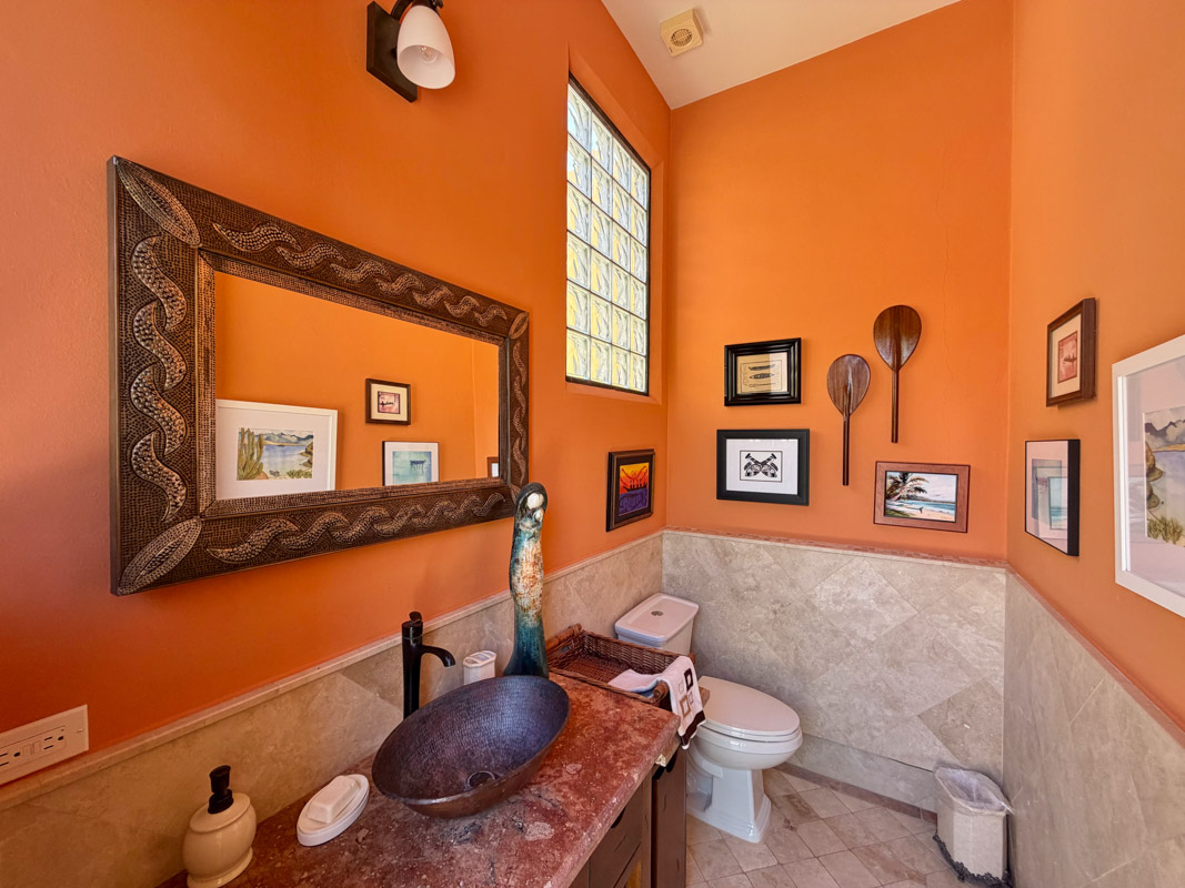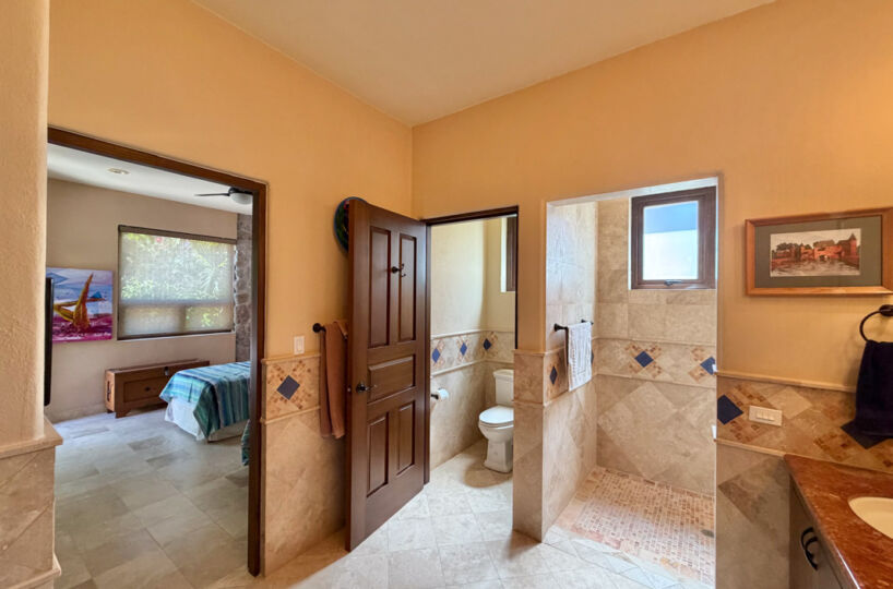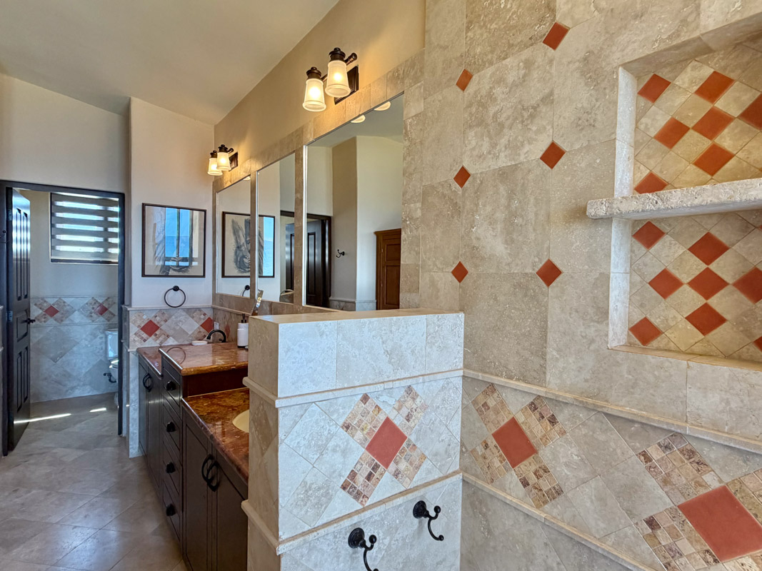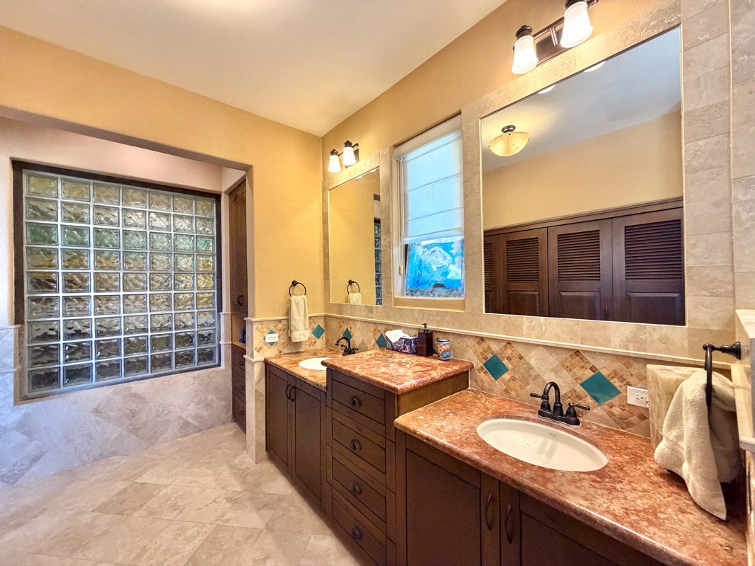 - Ground‑floor primary ensuite with ocean views; second primary ensuite and art studio on the upper level reached via cantera staircase
