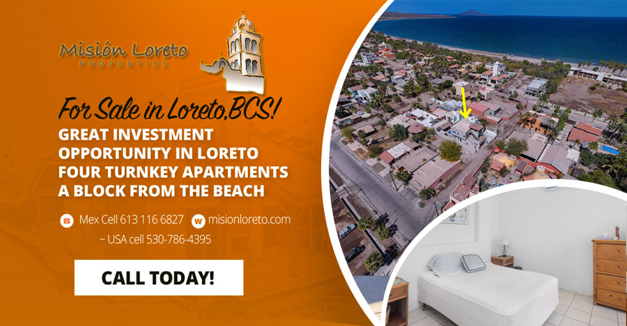 Great investment opportunity in Loreto Four turnkey apartments a block from the beach ADVERT Share This Great investment opportunity in Loreto! Four turnkey apartments a block from the beach